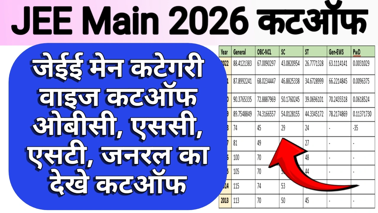 JEE Mains 2026 Category Wise Cut Off: नेशनल टेस्टिंग एजेंसी के माध्यम से जेईई मेंस 2026 के रिजल्ट के साथ ही कैटिगरी वाइज कट ऑफ घोषित किया जाने वाला जितने भी कैंडीडेट्स है वह ऑफिशियल वेबसाइट jeemain.nta.nic.in पर जेईई मेंस कैटिगरी वाइज कट ऑफ 2026 आसानी से चेक कर पाएंगे| पिछले वर्षों के ट्रेंड को देखा जाए और प्रसिद्ध इंस्टिट्यूट के आधार पर जेईई मेंस 2026 हेतु जनरल केटेगरी का जो कटऑफ है लगभग 94 परसेंटाइल यहां पर रहने का पूरे उम्मीद है| ओबीसी कैटेगरी हेतु यह परसेंटाइल 81 रह सकता है| एससी के लिए कट ऑफ 61 रह सकता है| एससी के लिए कट ऑफ 61 रह सकता है| और एसटी के लिए 48 परसेंटाइल रह सकता हैं जो भी स्टूडेंट है वह इसका टॉप के अंतर्गत सुरक्षित रहेंगे और जो स्टूडेंट इस कट के अंतर्गत आएंगे| वह आगे की परीक्षा जेईई एडवांस्ड की परीक्षा में योग्य रहेंगे| जेईई मेन कट ऑफ हर वर्ष विभिन्न प्रकार के कारकों पर निर्भर करता है जैसे कि एग्जाम का क्या डिग्री लेवल है और एग्जाम में जो सम्मिलित होने वाले कैंडिडेट्स हैं उनकी कितनी संख्या है जेईई मेन 2026 कैटिगरी वाइज कट ऑफ बहुत जल्द घोषित किया जाने वाला है जेईई मेन 2026 का जो रिजल्ट है 16 फरवरी 2026 को घोषित किया गया था और जेईई मेन कैटिगरी वाइज कट ऑफ के बारे में पूरी जानकारी बताई गई है|
