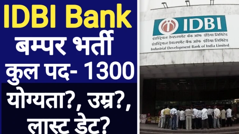 IDBI New Vacancy 2026: आईडीबीआई बैंक में जूनियर अस्सिटेंट और मैनेजर और असिस्टेंट मैनेजर ग्रेड ए के कुल 1300 पदों …