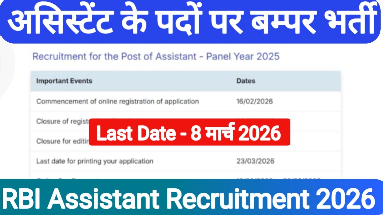 RBI Assistant Recruitment 2026: बैंकिंग क्षेत्र में अगर आप कैरियर बनाना चाह रहे हैं या करियर बनाने की सोच रहे हैं तो तमाम युवाओं के लिए काफी बड़ा अवसर आ चुका है| काफी लंबे समय से इस बैंकिंग क्षेत्र में असिस्टेंट के पदों पर विज्ञापन का इंतजार अभ्यर्थी कर रहे थे जो कि युवाओं के लिए एक बड़ी खुशखबरी आ चुकी है| भारतीय रिजर्व बैंक आफ इंडिया के द्वारा देश भर के विभिन्न प्रकार के कार्यालय हेतु असिस्टेंट के पदों पर इस भर्ती हेतु ऑफिशियल नोटिफिकेशन घोषित कर दिया है और इस भर्ती प्रक्रिया के तहत कुल 650 पदों को भरा जाएगा| जितने भी योग्य व इच्छुक उम्मीदवार हैं वह आरबीआई की ऑफिशियल वेबसाइट पर rbi.org.in पर जाते हुए ऑनलाइन आवेदन कर पाएंगे| आवेदन करने की लास्ट डेट 8 मार्च 2026 निर्धारित किया गया है|
