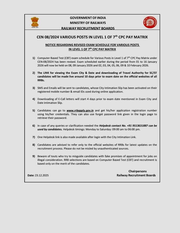 RRB Group D Official Notice