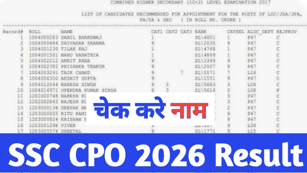 SSC CPO 2026 Paper 1 Result: एसएससी सीपीओ पेपर वन के रिजल्ट को लेकर उम्मीदवार इंतजार कर रहे हैं जो कि फरवरी महीने के अंतिम सप्ताह में एसएससी सीपीओ का रिजल्ट जारी होने की प्रबल संभावना दिख रही है| रिजल्ट ऑफिशियल वेबसाइट ssc.gov.in पर ऑनलाइन माध्यम से उपलब्ध रहेगी जो कि उम्मीदवार मेरिट लिस्ट को आसानी से पीडीएफ के रूप में डाउनलोड कर पाएंगे और अपना नाम चेक कर पाएंगे| इस आर्टिकल में रिजल्ट की डेट चेक करने की जो प्रक्रिया है और कट ऑफ व रिजल्ट चेक करने वाले करते समय आने वाली जो तकनीकी समस्याएं हैं इन सभी को लेकर पूरी जानकारी आसान भाषा में पूरे विस्तार से बताया गया है|