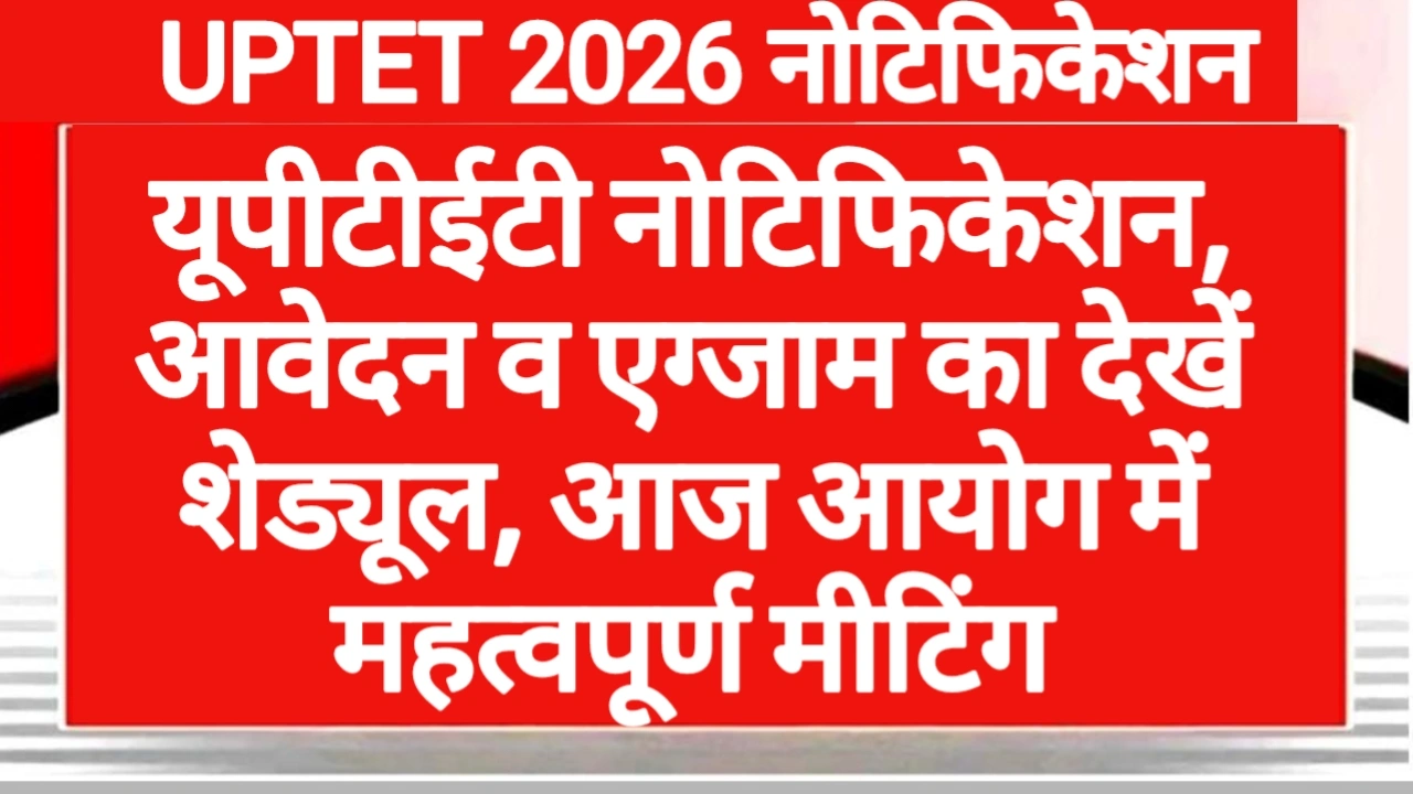 UPTET 2026 Notification: उत्तर प्रदेश शिक्षा सेवा चयन आयोग में आज एक महत्वपूर्ण बैठक होने वाली है। इस महत्वपूर्ण बैठक में उत्तर प्रदेश शिक्षक पात्रता परीक्षा उत्तर प्रदेश शिक्षक भर्ती नोटिफिकेशन पर महत्वपूर्ण फैसला लिया जा सकता है। इसके अलावा बात कर लिया जाए तो यूपी टेट का नोटिफिकेशन कब जारी होगा। यूपी टेट के लिए आवेदन कब से शुरू होंगे और यूपी टेट का एग्जाम कब होगा यह अभ्यर्थियों में सवाल बना हुआ है। क्योंकि काफी लंबे समय से यूपी टेट के नोटिफिकेशन का अभ्यर्थी इंतजार कर रहे हैं और अभ्यर्थियों का इंतजार अभी तक समाप्त नहीं हुआ है उत्तर प्रदेश शिक्षक पात्रता परीक्षा से जुड़ी महत्वपूर्ण अपडेट विस्तार पूर्वक बताया गया है।